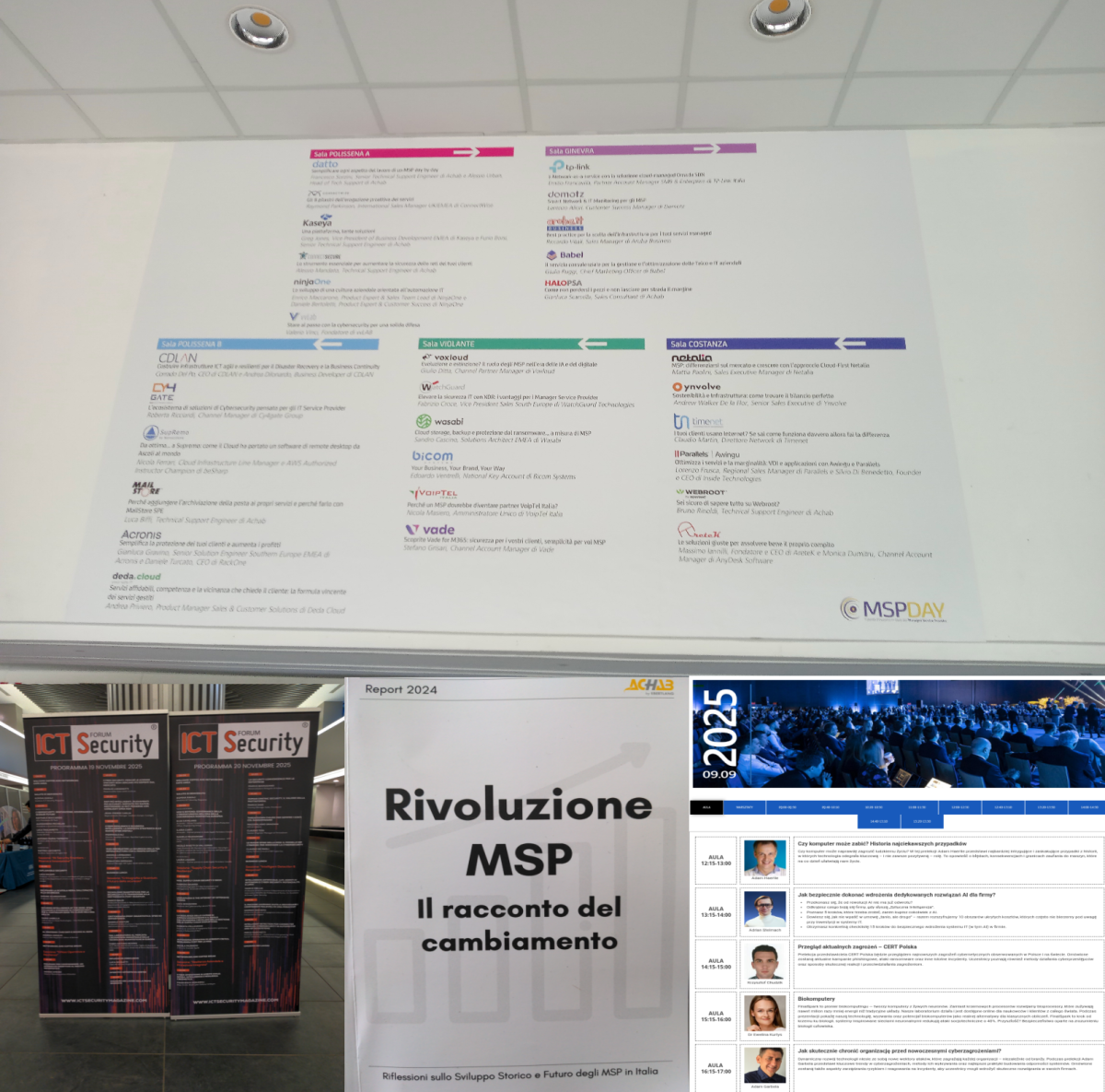 - Cybersecurity: evolution of threats, including those combined with the use of AI, tools to combat threats and increase the offering available to MSPs (endpoint protection, email protection, EDR/MDR systems, NDR, SOC, vulnerability management)
