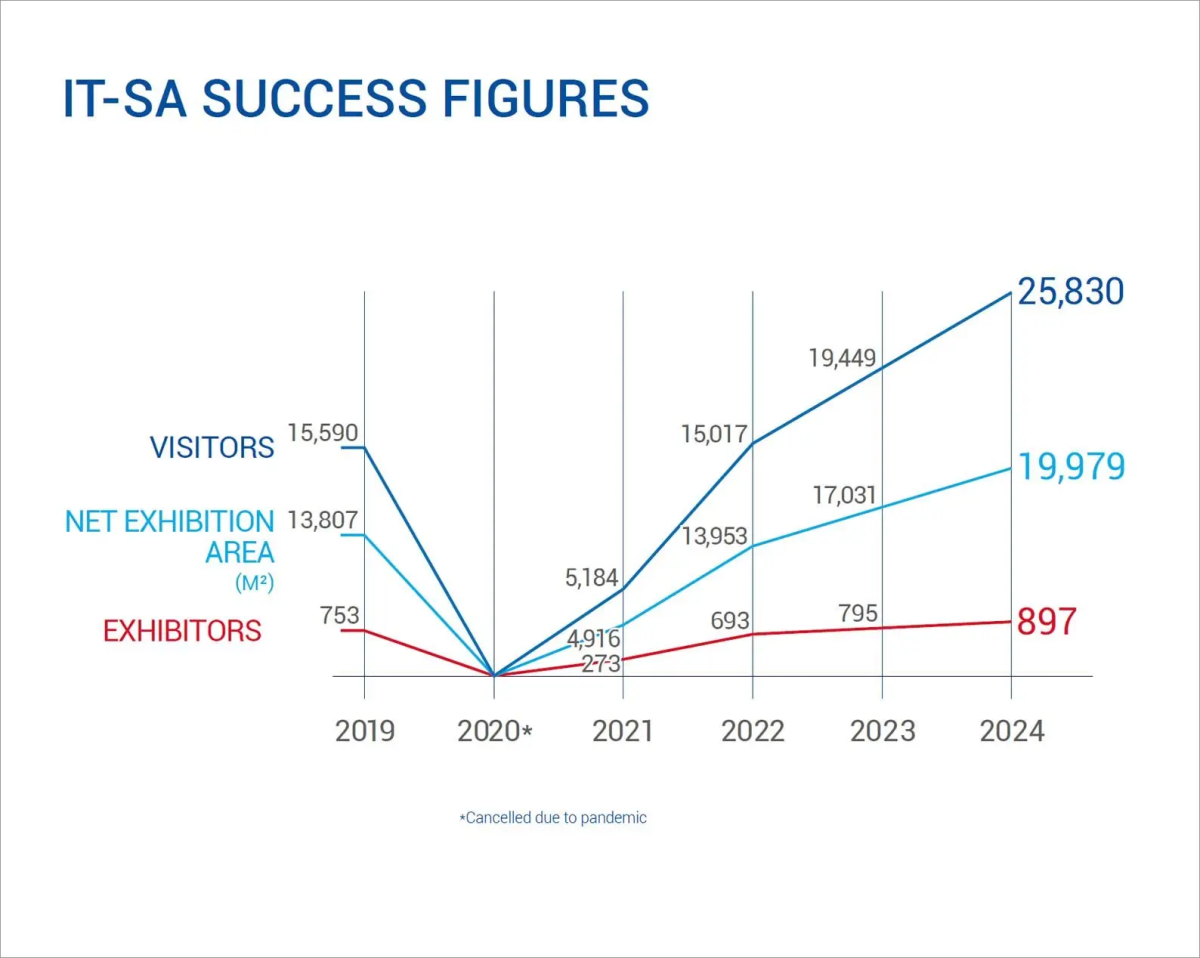 The 2025 edition of it-sa Expo&Congress set new records with 28,267 professional visitors (+9%) from 64 countries and 993 exhibitors spread across five halls.