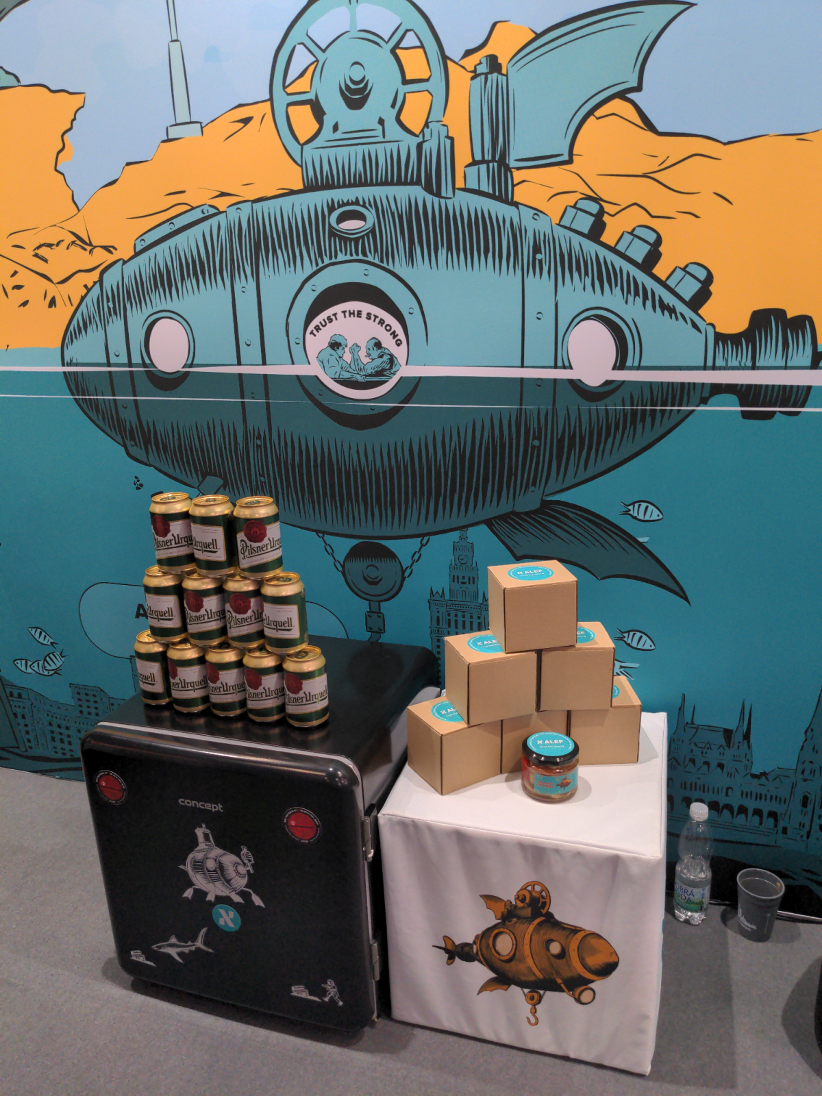 Of course, there was also a bar serving "pivo" (beer), with a few cans scattered here and there on some tables and at the stands of the exhibiting companies.