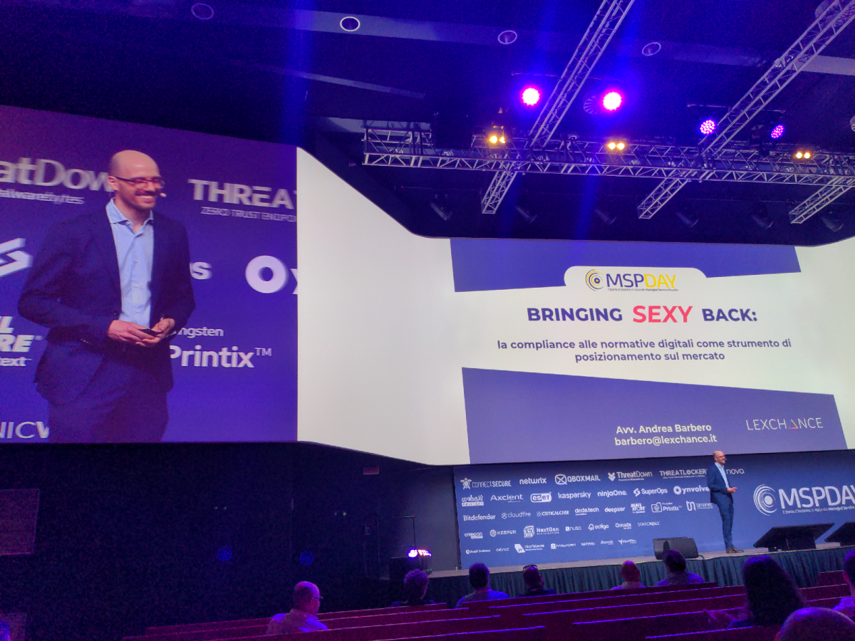 Of particular interest, at least to me, was the presentation by lawyer Andrea Barbero held at the end of June 6, 2025, titled "Bringing Sexy Back", or "compliance with digital regulations as a market positioning tool", regarding compliance with European digital regulation, particularly NIS-2, starting from GDPR and arriving at the more recent AI Act, and the opportunities they can offer to MSPs.
