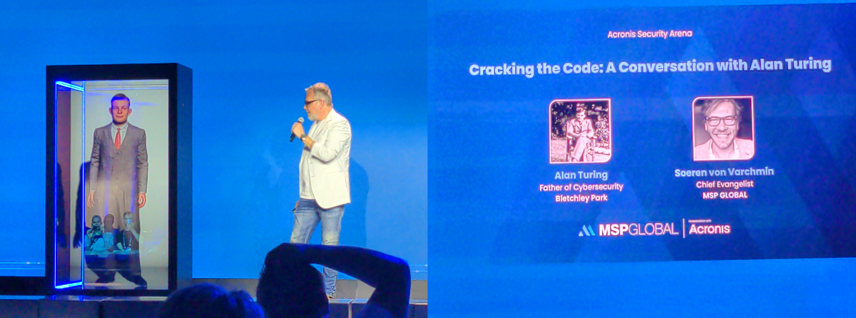 I attended the session entitled “Cracking the Code: Conversation with Alan Turing", in which Soeren von Varchmin (Chief Evangelist at MSP GLOBAL) interviewed Alan Turing (the Father of Cybersecurity), recreated through AI. It was truly exciting!
